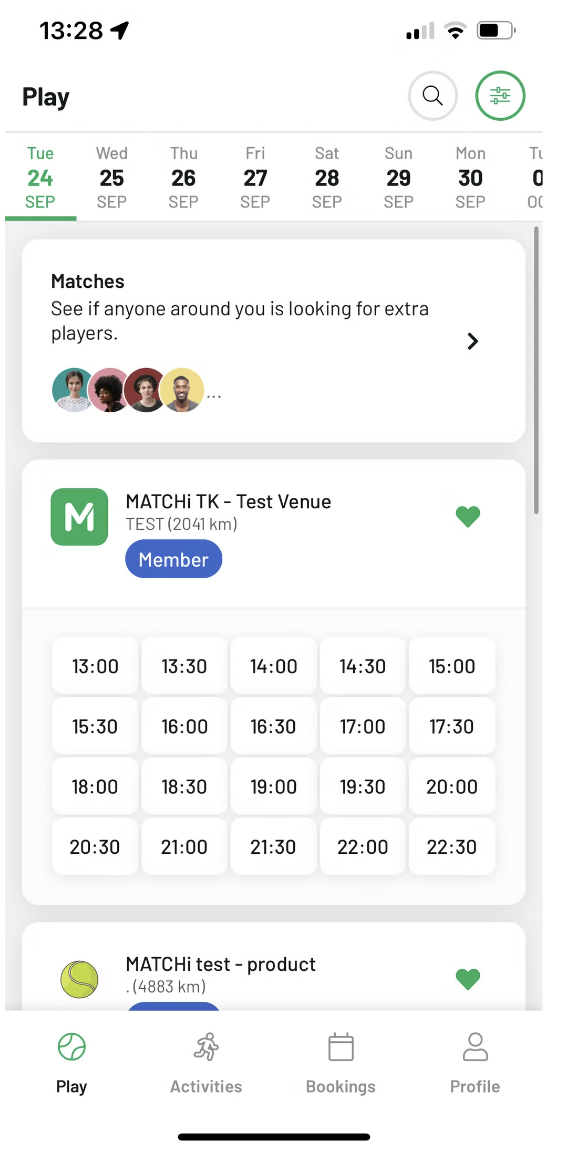 I fliken "Spela", klicka på "Matcher" för att hitta öppna matcher nära dig.